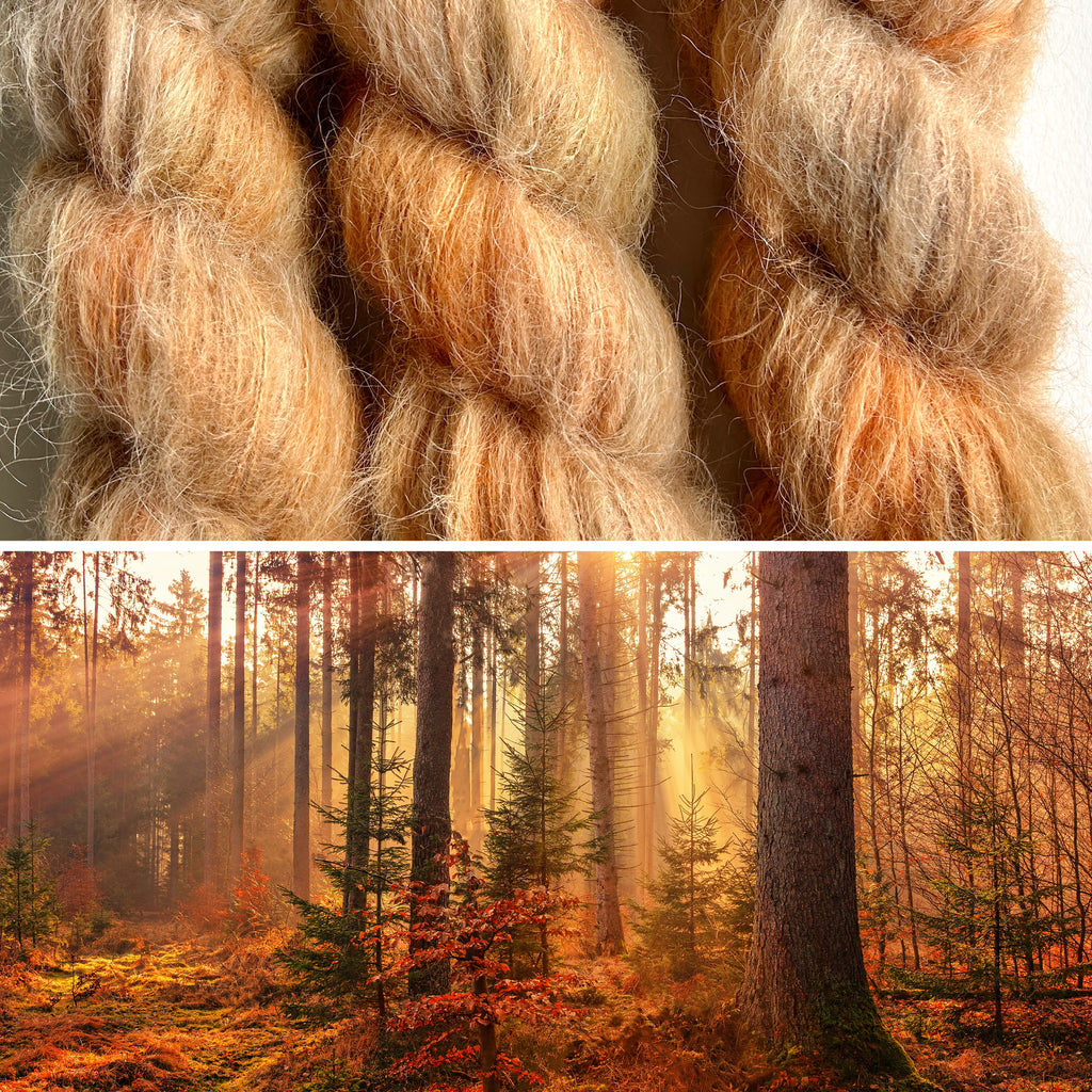 Hand dyed on a super soft yarn base that contains a super soft baby alpaca fluff with silk. We also have Autumn Rays on our 4ply weight superfine merino with nylon in our 4ply weight yarn section.