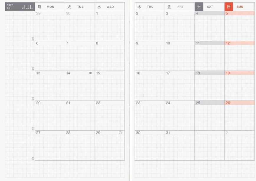 A6 Hobonichi Original Techo 2026 English (Jan Start)