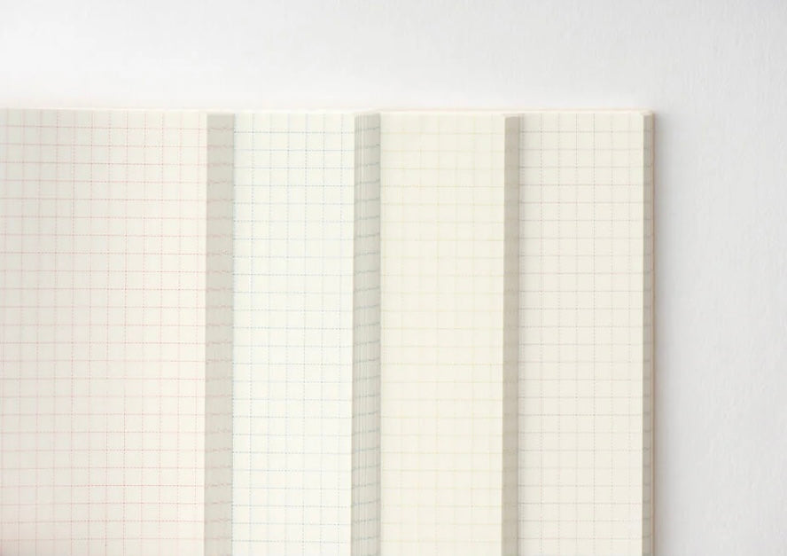 This notebook has Tomoe River paper, opens completely flat, and contains graph paper divided into 4 colors.