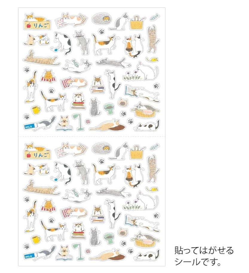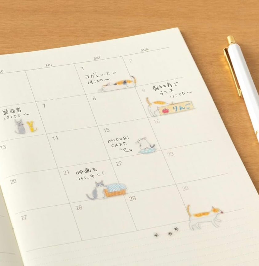 Midori Notebook Stickers M Cat brings a playful touch to your diary, planner, or notebook with charming designs by Sayo Koizumi. Featuring a variety of adorable feline faces, these stickers are perfect for highlighting important dates and adding colour and personality to your pages. Ideal for monthly blocks, the stickers come in a perforated design for easy division into two parts, allowing you to carry just what you need. The stick-on/peel-off type ensures effortless decoration, making it fun and simple to personalise your planners and notebooks.
