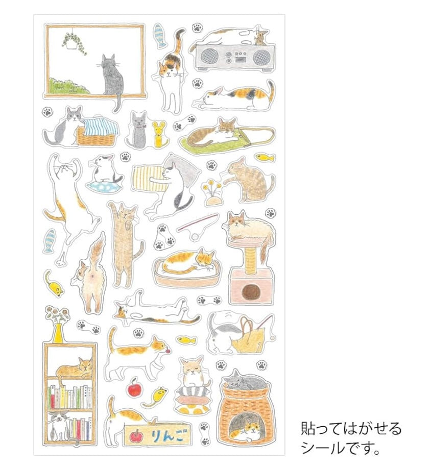 Midori Notebook Stickers S Cat brings a playful touch to your diary, planner, or notebook with charming designs by Sayo Koizumi. Featuring a variety of adorable feline faces, these stickers are perfect for highlighting important dates and adding colour and personality to your pages. Ideal for monthly blocks, the stickers come in a perforated design for easy division into two parts, allowing you to carry just what you need. The stick-on/peel-off type ensures effortless decoration, making it fun and simple to personalise your planners and notebooks.