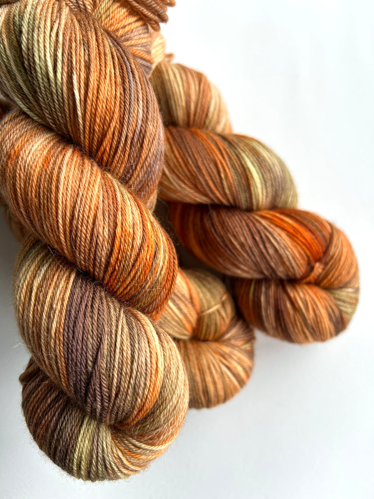 Hand dyed on a super soft yarn base that contains a blend of super fine merino with 15% nylon, also making it suitable for socks. A brand new base to us! Looking to add some texture to your project? We also have Autumn Rays on our Alpaca lace weight fluff in our lace weight yarn section.