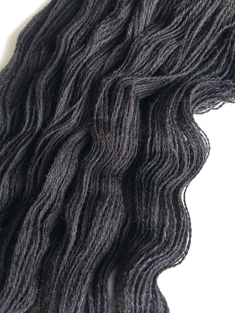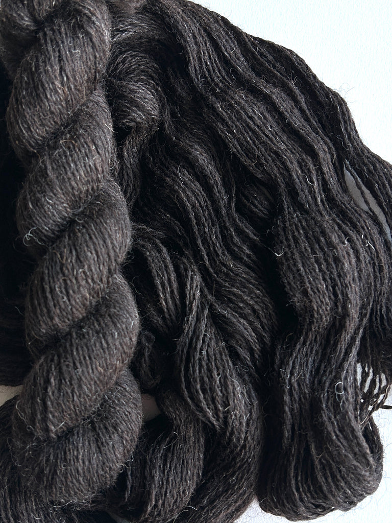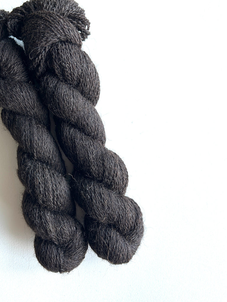 Undyed natural black Shetland yarn is just stunning. It has a deep rich colour that is perfect to use as a contrast in any number of colourwork or Fair Isle patterns. This particular batch is very soft to the touch, woollen spun but still a 4ply weight yarn. At 220m per 50g skein its relatively economical too. 100% non Superwash Shetland yarn from the sheep on the islands that roam quite freely feeding on natural heathers and seaweed on the beaches. Rustic in nature both the climate and the diet of the flocks produces a wool that is warm and strong. Shetland yarn can sometimes feel a little coarse compared to other yarn from sheep in warmer climates but after a few wears & careful washes it will begin to soften.